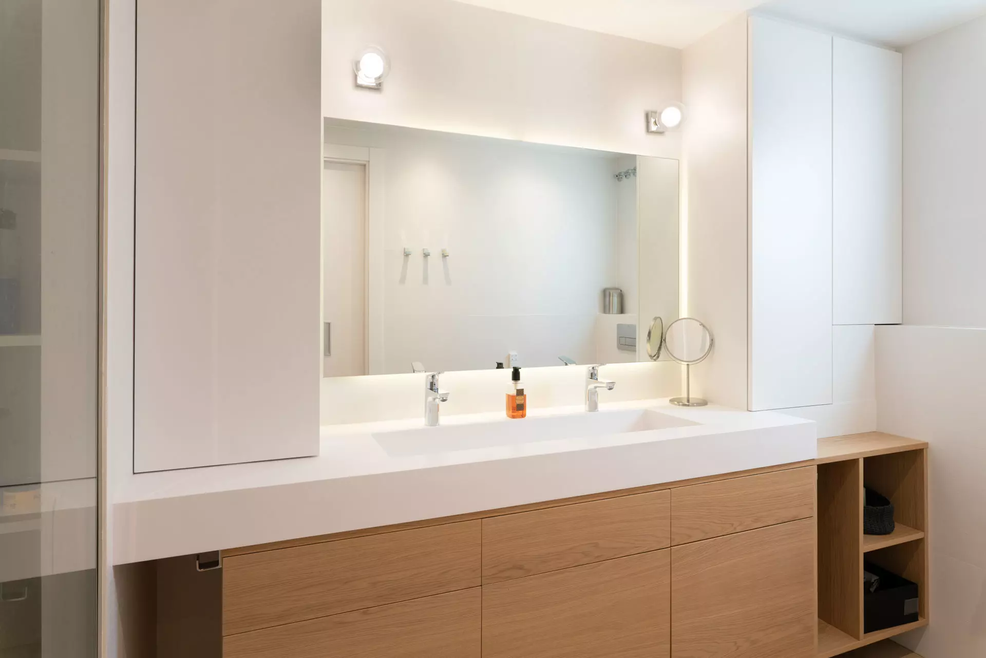 Los clientes vieron el potencial del proyecto y nos apoyaron y ayudaron en todo momento. Después llegó el rompecabezas, situar cinco baños repartidos por toda la vivienda.